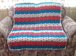Offset Shells Afghan is a fantastic pattern for crocheting beginners and an easy blanket to create for celebrating the 4th of July. The shell stitching makes this a simple crochet pattern. You can use this blanket for a child's room because of the basic stripes and size, and the coloring is light enough for a baby blanket, too. Bring this adorable afghan to a baby shower as a gift and it is sure to be the favorite gift out of the pile. Even so, this red-white-and-blue afghan would be perfect to lay out in the grass to sit and watch fireworks on with your family.