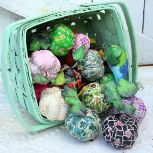 Pumpkins and vintage patterns go together like caramel and apples. These Cute Vintage Fabric Pumpkins are creative pumpkin decorating ideas for autumn. You will be the only house on the block with these unique little pumpkins. Whether you're using them as alternative Halloween decoration ideas or leaving them up all season long, you'll want to decorate with these little guys every year from here on out. Grab a few faux pumpkins and make these Cute Vintage Fabric Pumpkins.