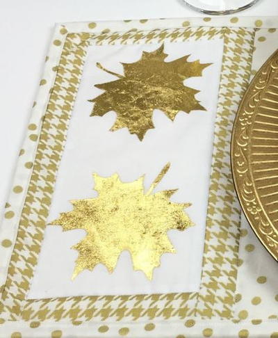 - Gold Leaf Placemats: Treat your guests like royalty with these elegant Gold Leaf Placemats. These table decorations are perfect for Thanksgiving dinner, Christmas brunch, or any other special occasion where you want to be a little bit fancy. Shiny and chic!
