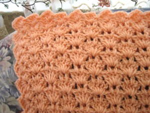 I love this blanket, it looks stunning. I love the color and the pattern. It just looks elegant to me. I am going to add this pattern to my arsenal for me to do for list for Christmas presents this year. I am going to try to do a shawl or a wrap using this stitch pattern. When I get it finished, I will post a picture.