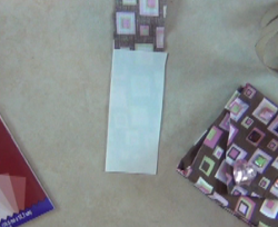 Place 2 more bits of interfacing on open tab as shown. Remove paper backing.
