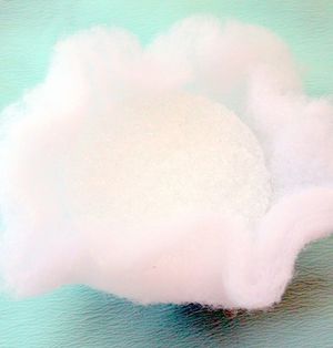 - Next, cover the polyfill covered styrofoam with your fabric, pull the thread to tighten it and tie it off. Run a bead of hot glue around the interior edge of the mold and place the fabric covered styrofoam piece into the mold, pressing down all around.