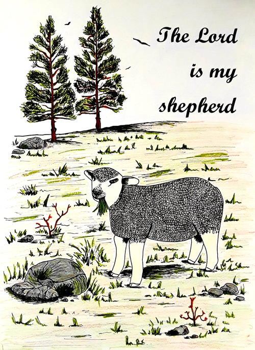 From the Designer: "In Psalm 23, David likens God to a shepherd that cares for his flock. In the Psalm he describes how God makes us lie down in green pastures, which means that He looks after us, protects us and cares for all our needs. This coloring page offers the ideal reflection during Bible Study when this Psalm is the topic under discussion."