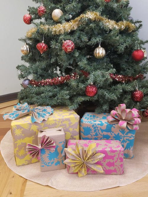 "Stencil Patterns Give Holiday Packages Handmade Charm! Stencil designs are the perfect way to give your holiday gifts a personalized touch. Stenciling gift wrap is easy to do, affordable, and it can instantly add some handmade charm to your package. Today we’re going to walk you through the simple steps to create your own stenciled wrapping paper using our Otomi Craft Stencil. While any of our stencil design would work for this project, the Otomi Stencil is very popular and it’s a cheerful all-occasion pattern."
