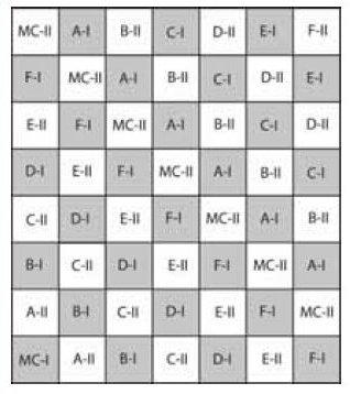 Using this diagram, sew 8 Motifs into 7 Strips.