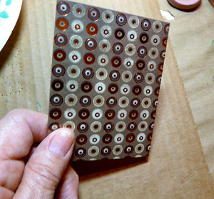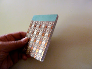 - Cut a piece of decorative print scrapbook paper and a piece of cardboard 3” x 4”, the same size as the pages.