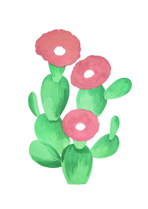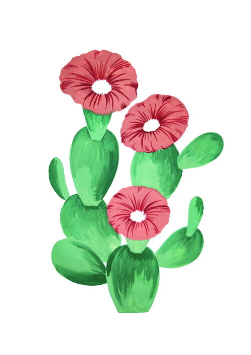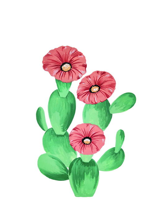 The cactus we are going to paint is commonly known as bunny ears because of its shape. In this project, we’ll paint the leaves of the cactus using wet-on-wet technique for a soft blended look and complete the artwork with round rust flowers.