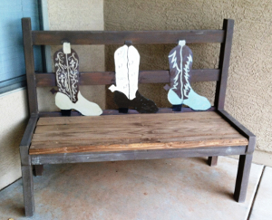 - Paint frame of bench with Krylon® Craft Hammered Series Paint. Hand paint the boots on the head board with various colors of paint. Paint the couples Brand and their Wedding Date.