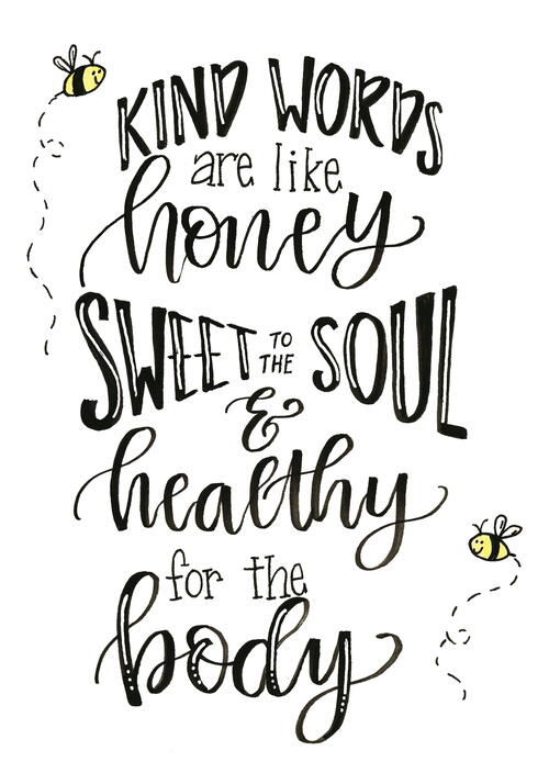 Proverbs 16:24: Kind words are like honey—sweet to the soul and healthy for the body. (NLT)