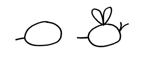 Now that we have a honeycomb, it’s time to learn how to draw our little bee. You’ll start with an oval, then add a short horizontal line on one end. This will be the body and stinger. Next, draw two vertical lines to represent antennae and two teardrop shapes for wings.