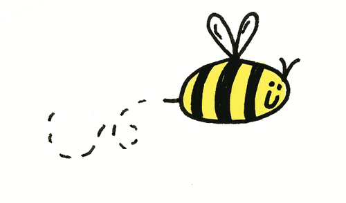 Divide the body with vertical lines to represent stripes. You can have as many or as few as you like, using whatever width looks best to you. Finally, add eyes and a little smile. You can give your bee the appearance of flight by creating a dashed line behind him to indicate where he’s been.