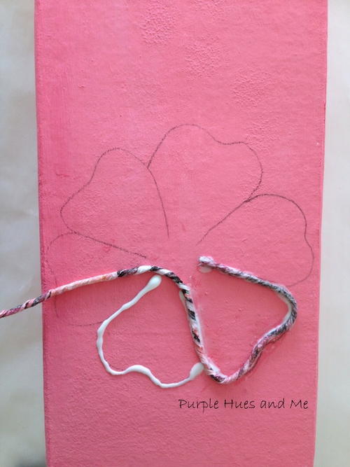 Continue outlining the pattern with tacky glue and adding the napkin twists until the pattern is completely outlined. Add additional twists for the stem and leaves.