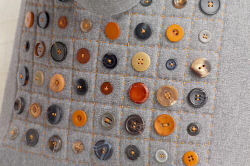 There’s more than one way to sew on a four-hole button. This tote gives you lots of opportunities to try them all! Stitches do not have to be horizontal- change the pattern to add variety to the design.