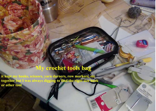 For quite a while I told myself I needed to make an organizer for all my crochet hooks and other paraphernalia so I didn't have to dig around in the bag they were kept in. The only purpose it served was to keep them in one place.
