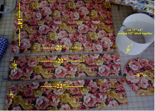 Put plastic canvas cylinder inside fabric pocket tube-pockets on outside of cylinder-leave 1” fabric at bottom edge.