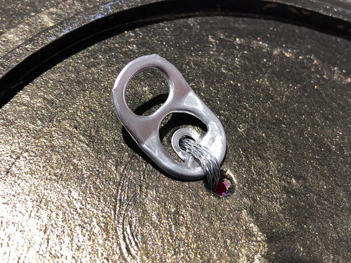 - recycled soda can tab and approx. 3" of picture hanging wire