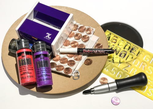 Add a patina and a bit of color to pennies with a dry-brushed coating of Plaid Color Shift Purple Flash.