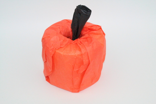 - Wrap one or two sheets of orange tissue paper inside the toilet paper roll.