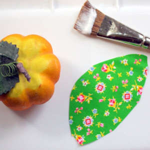 - Coat both sides of the fabric pieces with the Mod Podge and apply it to the gourd. Smooth it with your fingers until it's smooth. There will be some wrinkles, but do the best you can.
