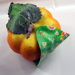 - To begin, start cutting your fabric in petal shapes to fit your mini-gourds.