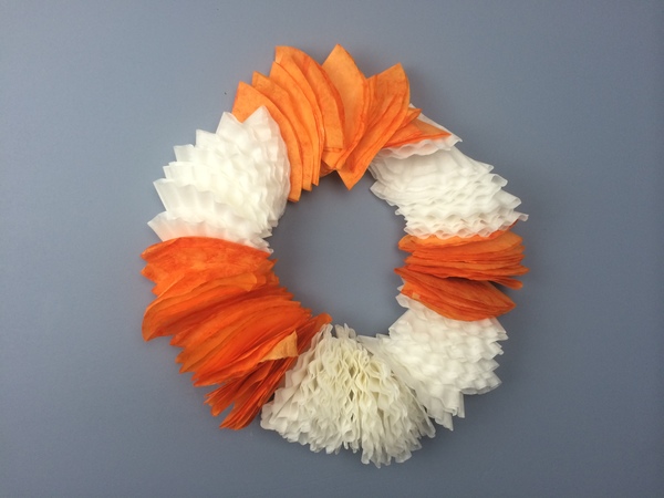 - Start hot glueing coffee filters to the wreath. Let it dry.