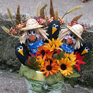 - Make mini bandanas from fabric scraps and tie around scarecrow necks, secure in back with hot glue.