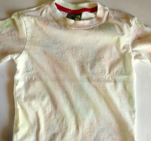 Wash the T-shirt in baby shampoo, rinse it thoroughly in cold water and allow the T-shirt to dry thoroughly.