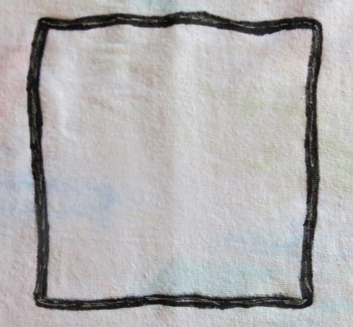 Use the pencil to draw two freehand squares on the front of the shirt.