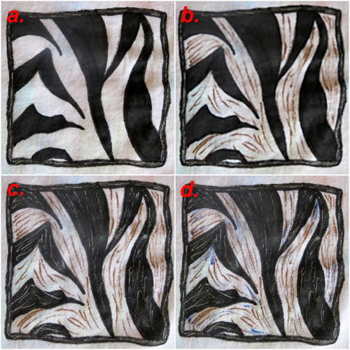 c. Add some brown to the inner part of some of the spots. Also add a few fine brown lines to the background.