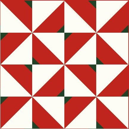 Add a green triangle to all of the red 6 3/4″ squares.