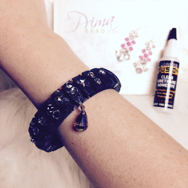 Use your bracelet as a base and add crystals on as you see fit. The Liquid Fusion Clear Adhesive just needs a bit of time to dry.
