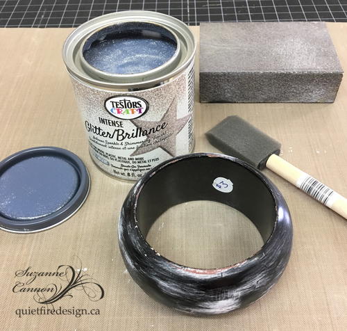 Stir the Glitter Paint thoroughly. Apply a smooth layer to the outer surface of the bracelet and allow to dry. Apply the next layer with strokes at 90 degrees from the strokes on the first layer. Repeat until you have the coverage that you want, allowing each layer to dry between coats.