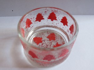 While the Mod Podge is still wet, sprinkle some red glitter over the sides and bottom of the candle holder.