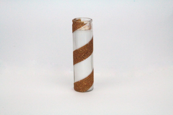 - Apply the glitter and shake off. Repeat tprocess his for the whole candle.