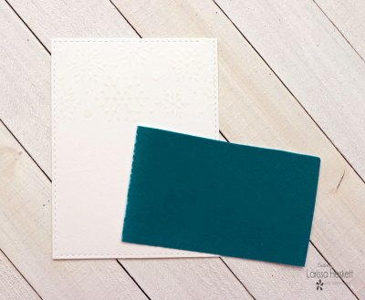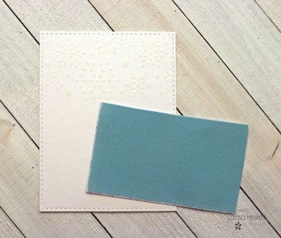 SWOON!! Pulling the Flock backing off to reveal the Flocked Snowflake design is my FAVORITE Part!! I wanted to add even more dimension so I used Distress Ink in Peacock Feathers with an Ink Dauber for the center of the Snowflakes and then added Tumbled Glass Distress Oxide Ink with an Ink Dauber to blend out the Peacock Feathers!! I LOVE how it really makes the Flocked Snowflakes POP off the Card Panel!!