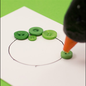 - Now sort through your green buttons, and lay them down on the circle in the order you want. Grab your glue gun, and one by one stick them down.