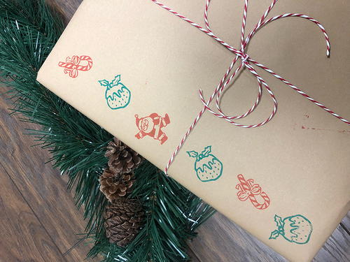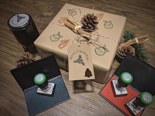 "Did you know… lots of your wrapping paper can’t be recycled!! You can still give festively wrapped presents with our eco-friendly wrapping solution. Simply use plain, brown (recyclable) paper and customise it with your own unique Christmas touch, in lots of different ways. Use a rubber stamp to personalise or decorate! Create festive patterns using the stamps or stamp on a personalised message."