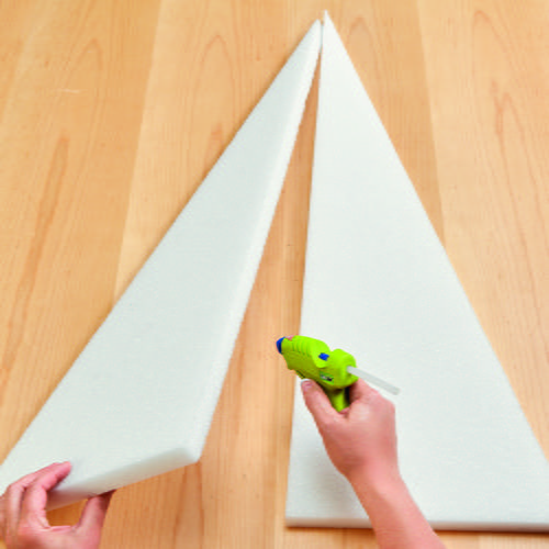 Draw a straight line from opposite corners across the length of the sheet. Cut the sheet in half. Lay the two halves together along the factory edges to create the tree shape. Glue the pieces together. Insert toothpicks in between for a stronger hold.
