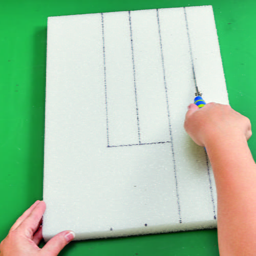 Cut out the paper templates and pin them to the remaining ½” foam sheet. Follow the instructions on the StyroCutter® Plus packaging to cut the shapes from the foam.