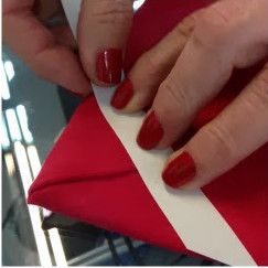 - You'll need to reinforce the bottom - first you'll add a strip of the tape inside the bottom layer and press the top layer. Smooth out any bumps with your fingers. Next, add another strip along the top layer and fold it over. Press so it is bonded. Turn your shirt inside out so the front is showing.