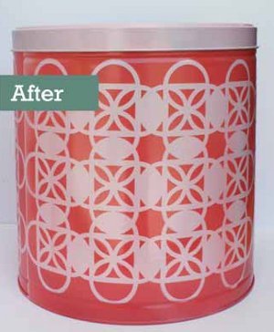 Do you have an old popcorn tin that's just begging to be reused? Check out this awesome project idea from Cristin Frank. These popcorn tins are large enough to be repurposed as a decorative trash can or storage container. And with the great spray paint colors from Krylon and pretty stencils, it's easy to create a custom tin! This Upcycled Christmas Tin also makes a great gift for giving your own handmade popcorn or other DIY gifts. Great for budget-friendly crafters, this project will make your holiday gift wrapping a breeze!