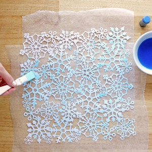 - Lay out your scrapbooking paper on some waxed paper. Mix a few drops of food coloring and some water and paint it onto your paper to dye it.