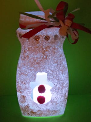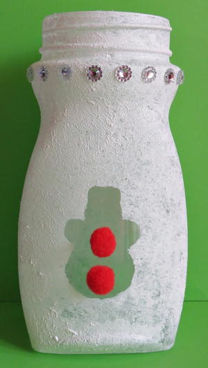 Fun and clever idea! This would be a fun scout troop or church group project for winter. You could adapt this idea using other shapes besides the snowman, such as a cat, a snowflake, star, holly shape or tree or even mittens! This could be personalized for a gift for the symbol that suits them best, or even a letter initial. Would look pretty in a grouping made from several different sized glass jars too. Fun idea!