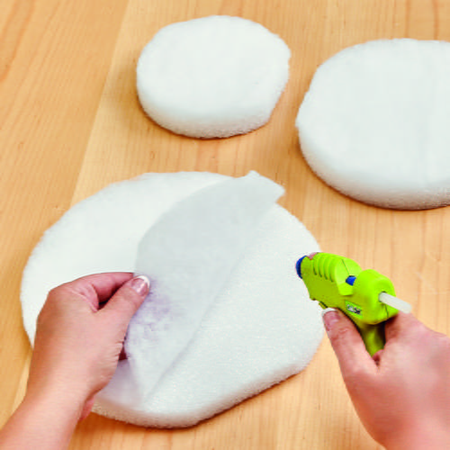Cut batting to cover just the fronts of all three discs. Glue in place and trim the excess batting to fit around the edge.