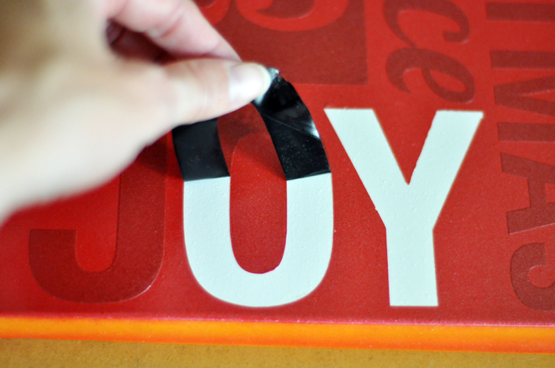 - Once your piece has been allowed to dry completely, you are now ready to remove the vinyl letters. Using a craft knife, carefully and gently pull the edge of the vinyl letters up, peel off and discard. If you start to pull the letters off and paint is coming up as well, you have not let it dry long enough, you should have clean edges where the vinyl is removed. Once all of the vinyl has been removed, remove the tape from the edges and you are done!