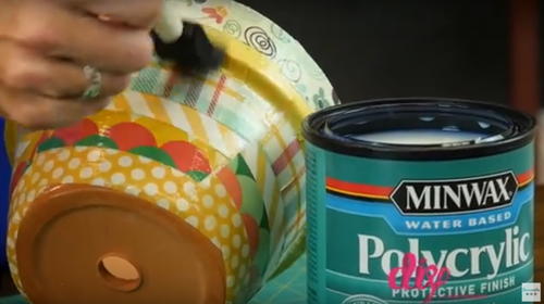 In this example, Jane Monzures from DIY by Jane seals a decoupaged terra cotta pot with polycrylic. Try this method!Â