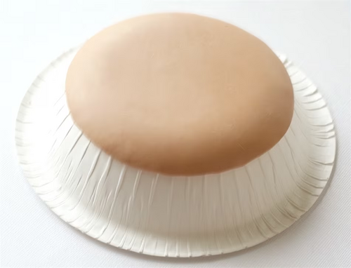 Place upside down onto small paper bowl as shown gently pressing edges down and bake on baking sheet according to directions.