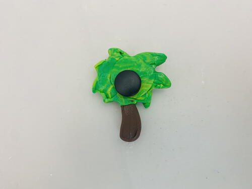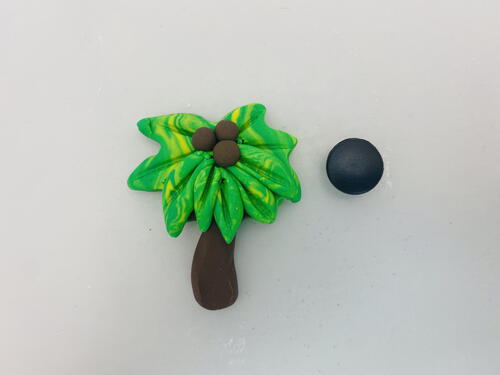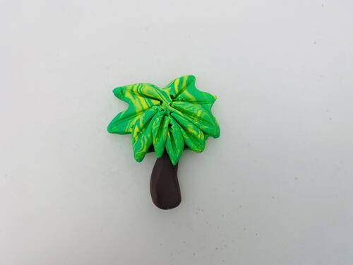 Add more of the Green/Yellow clay to the leaf shapes at the top.