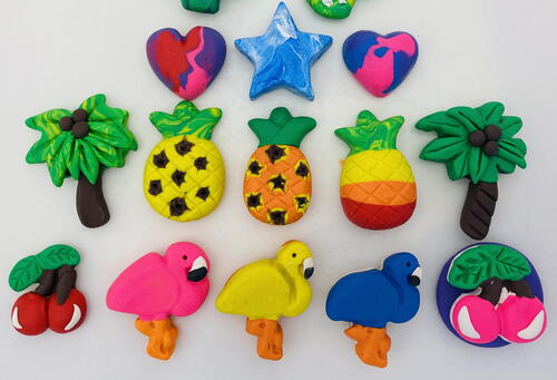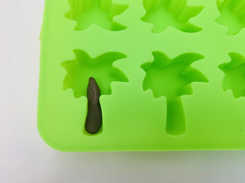 Bake the palm tree following the baking instructions for Bake Shop®. When the tree is completely cool, glue the Jibbitz on with silicone glue and allow to dry completely.