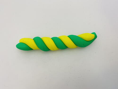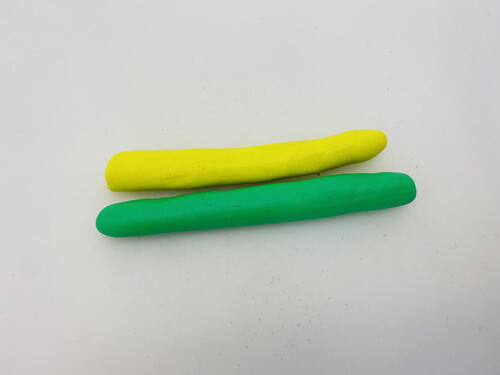Take about 1/4 bar of Green and 1/4 bar of Yellow and make little logs. -